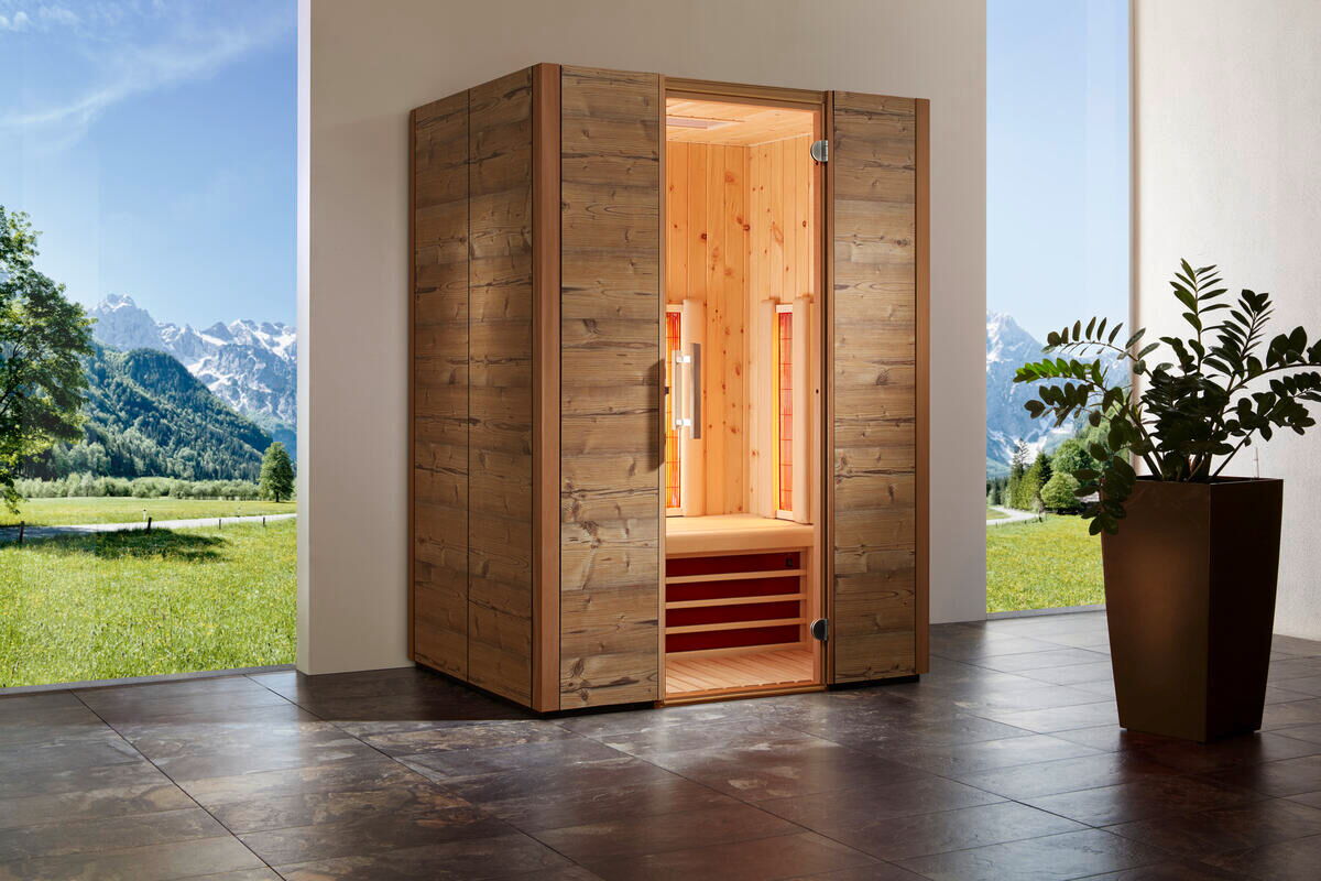 Mehr Entspannung geht nicht: Die Infrarot-Kabine mit Flächenheizung, Infrarotstrahler und Salzverdampfer.